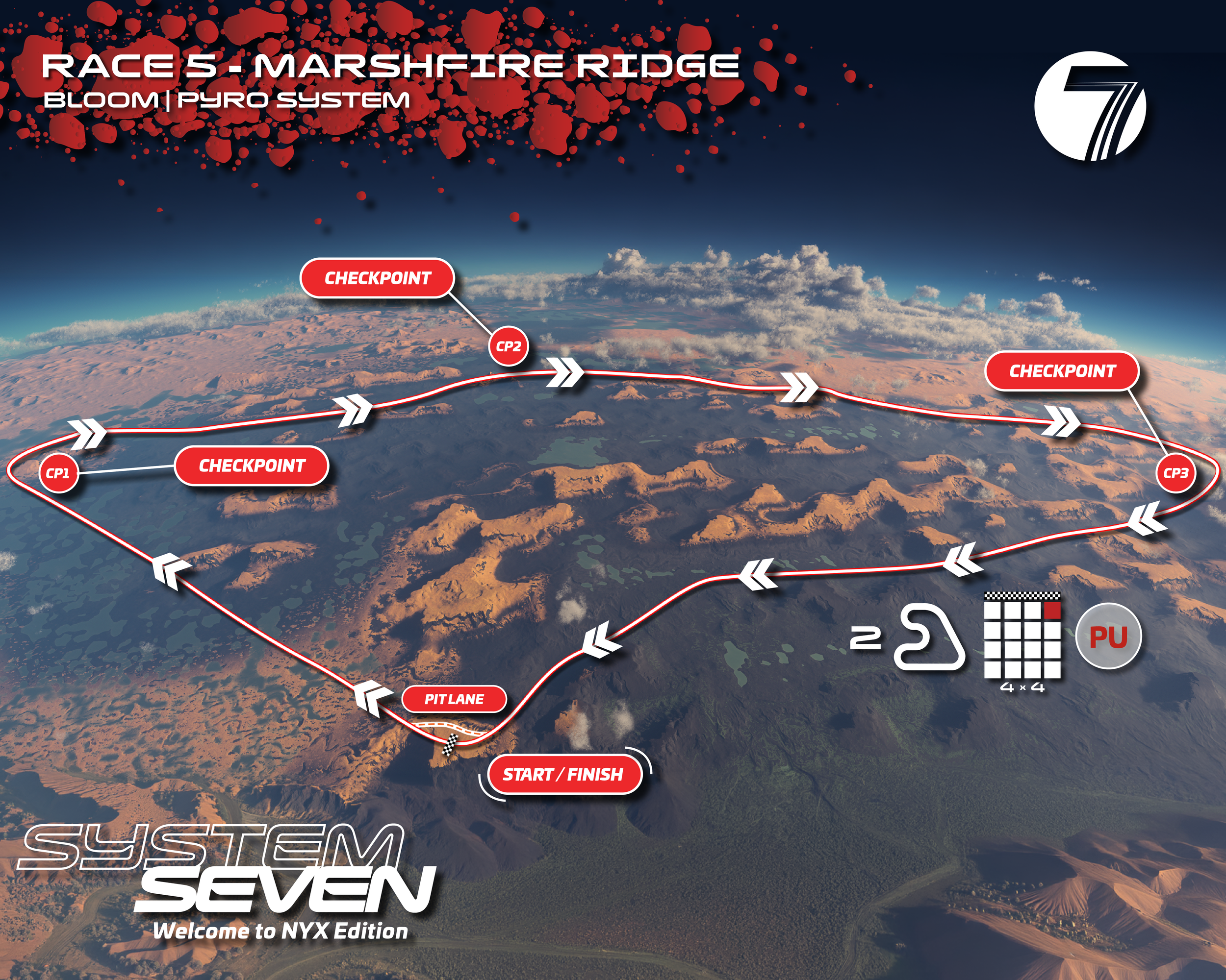 If racers rise above the cliff edges of the surrounding mountains they will be time penalized for each 5 seconds above the cliffs edge.