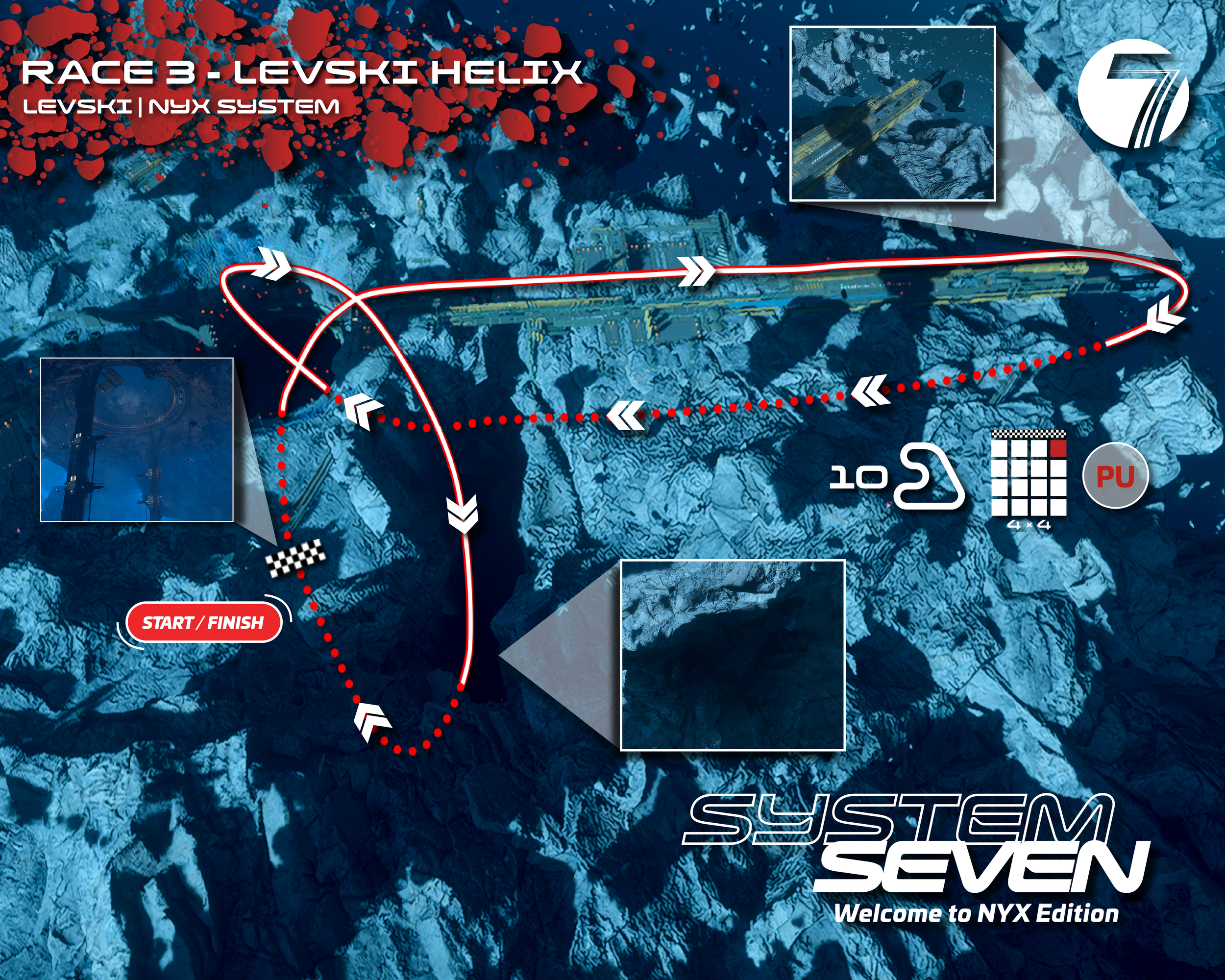 On the second turn/fall, racers must reach the end of the shaft before dropping down under the asteroid.